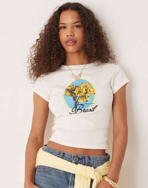 ASOS DESIGN - Cremefarvet baby-T-shirt "Brasil"-grafik