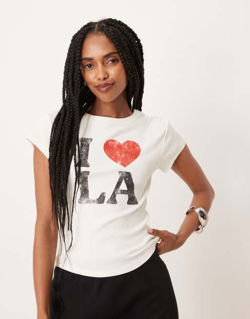 ASOS DESIGN - Cremefarvet baby-T-shirt med LA-grafik