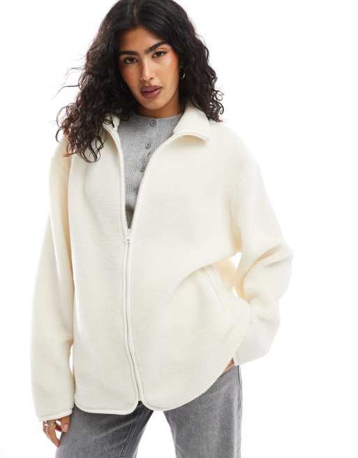 ASOS DESIGN - Cremefarvet fleecetrøje med lynlås