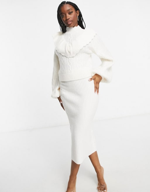 ASOS DESIGN - Cremefarvet kabelstrikket trøje- og nederdelssæt