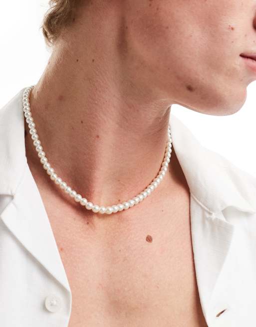 ASOS DESIGN - Cremefarvet kort halskæde med kunstige kulturperler i glas på 6 mm