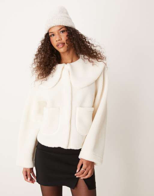 ASOS DESIGN - Cremefarvet oversized jakke i plys med krave