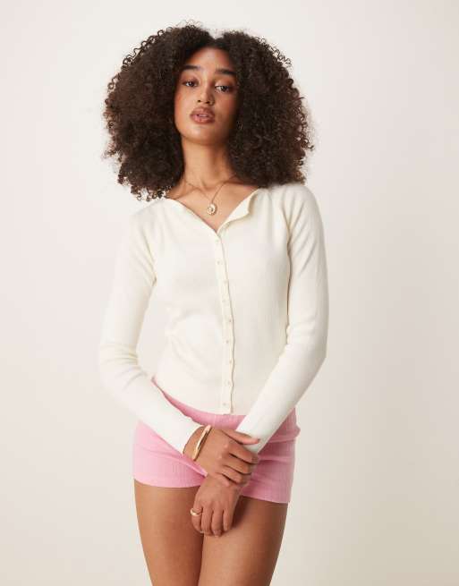 ASOS DESIGN - Cremefarvet, ribstrikket og figursyet cardigan