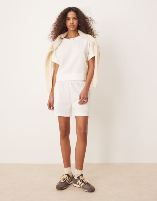 ASOS DESIGN - Cremefarvet sæt med shorts og T-shirt med vaffeltekstur og chunky ribstrikket kant