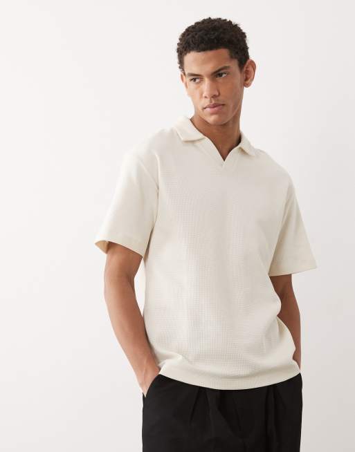 ASOS DESIGN - Cremefarvet vaflet afslappet polo med reverskrave