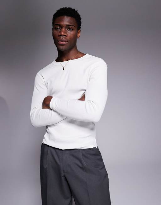 ASOS DESIGN - Cremehvid og tætsiddende T-shirt med firkantet pasform og lange ærmer i ribstrik