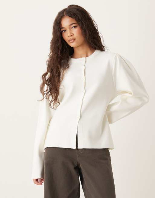 ASOS DESIGN - Cremehvid strikket cardigan med struktur, indsyninger i taljen og pufærmer