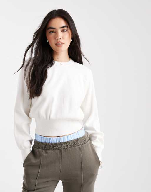ASOS DESIGN - Cremehvid strikket trøje med rund hals og indsyet talje