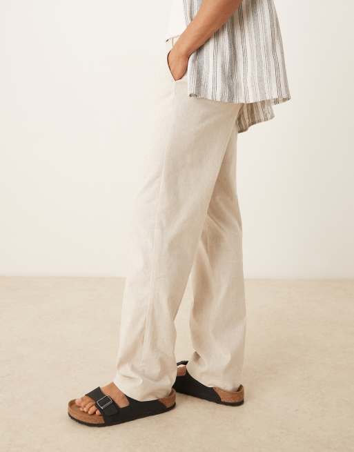 ASOS DESIGN - Cremehvide elegante bukser med lige ben og høj talje i hørblanding
