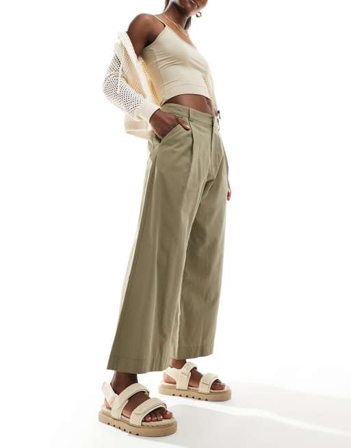 ASOS DESIGN - Cropped bukser med vide ben i olivengrøn