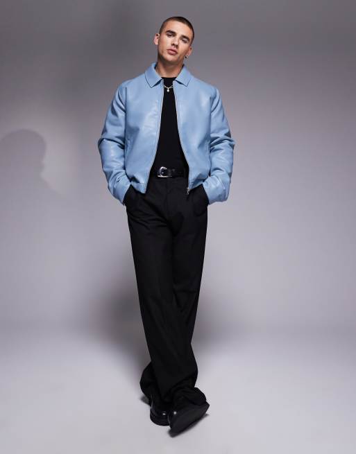 ASOS DESIGN - Cropped Harrington-jakke i blåt, imiteret læder
