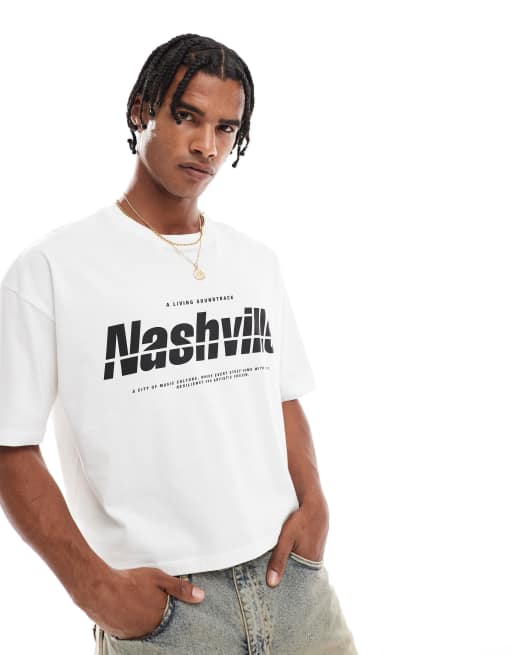 ASOS DESIGN - Cropped og oversized hvid T-shirt med grafisk byprint
