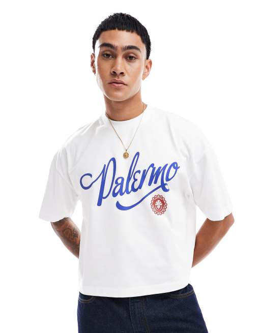 ASOS DESIGN - Cropped og oversized T-shirt i hvid med byprint på brystet