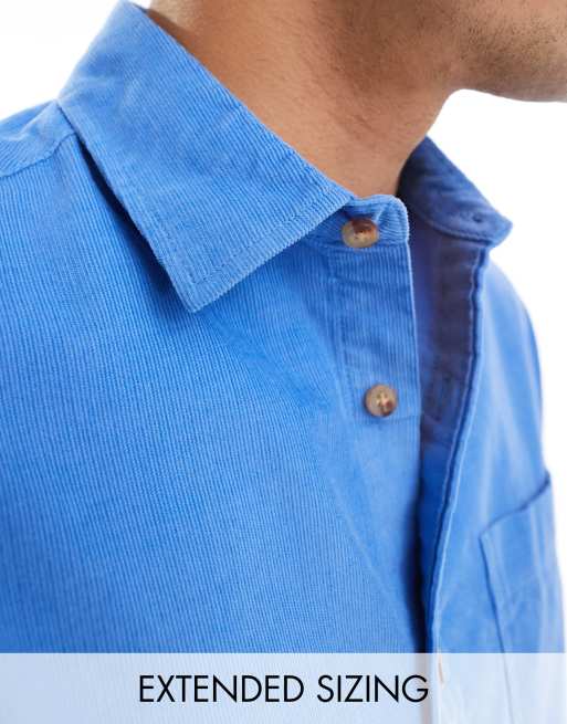 ASOS DESIGN - Cropped oversized skjorte med korte ærmer og firkantet pasform i blåt fløjl