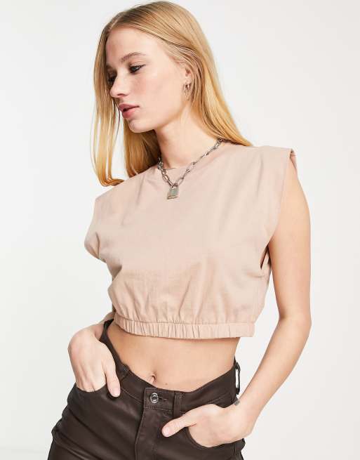 ASOS DESIGN - Croptop med elastisk talje og firkantet pasform i beige