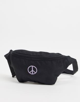 ASOS DESIGN - Crossbody-bæltetaske i sort med broderet peace-tegn