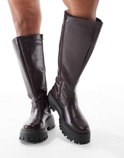 ASOS DESIGN Curve - Corey - Chunky og brune knæstøvler