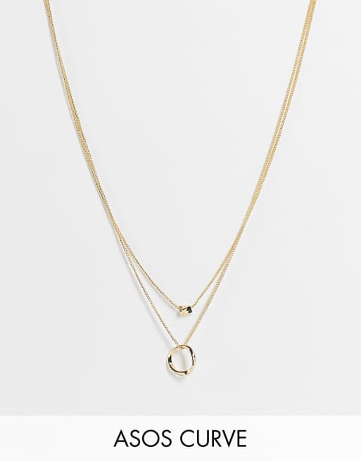ASOS DESIGN - Curve - Guldfarvet multi-halskæde med snoet hoop og guldklump