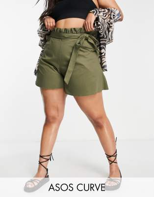 ASOS DESIGN Curve - Kakifarvede utility-shorts med bælte