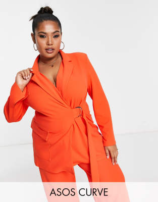 ASOS DESIGN Curve - Rød utility-habitblazer i jersey med D-ring