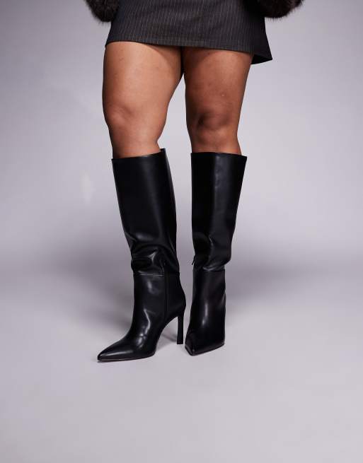 ASOS DESIGN Curve - Sorte højhælede knæstøvler