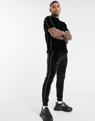 ASOS DESIGN - Del af sæt - Sort fløjl med striber
