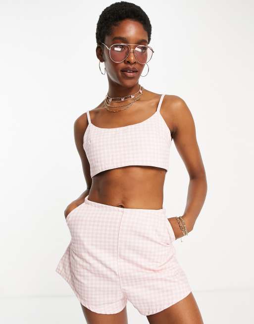 ASOS DESIGN - Denimbralette i lyserøde gingham-tern - Del af sæt