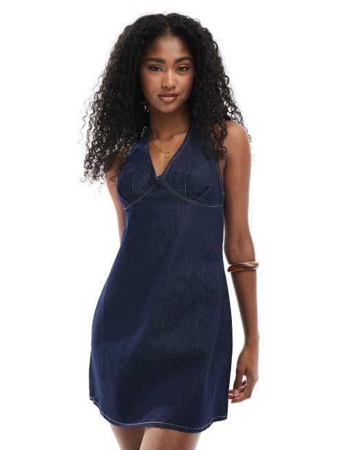 ASOS DESIGN - Denimkjole med halterneck og indsyningsdetalje