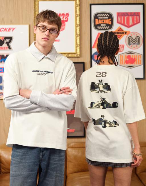 ASOS DESIGN - Disney - Cremefarvet oversized T-shirt med V-hals og Mickey-print