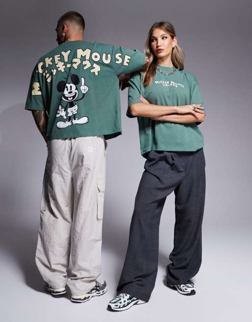 ASOS DESIGN - Disney - Unisex - Grøn oversized T-shirt i firkantet pasform med Mickey Mouse-print