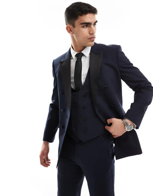 ASOS DESIGN - Dobbeltradet skinny-habitjakke i marineblå