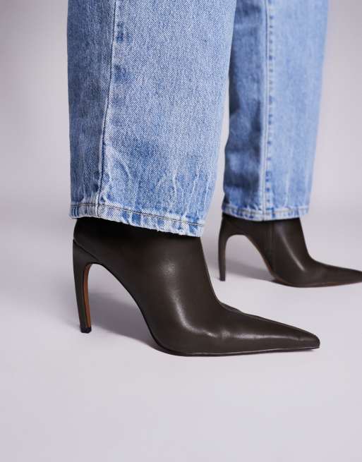 ASOS DESIGN - Ebony - Olivengrønne ankelstøvler med ekstremt spids høj hæl