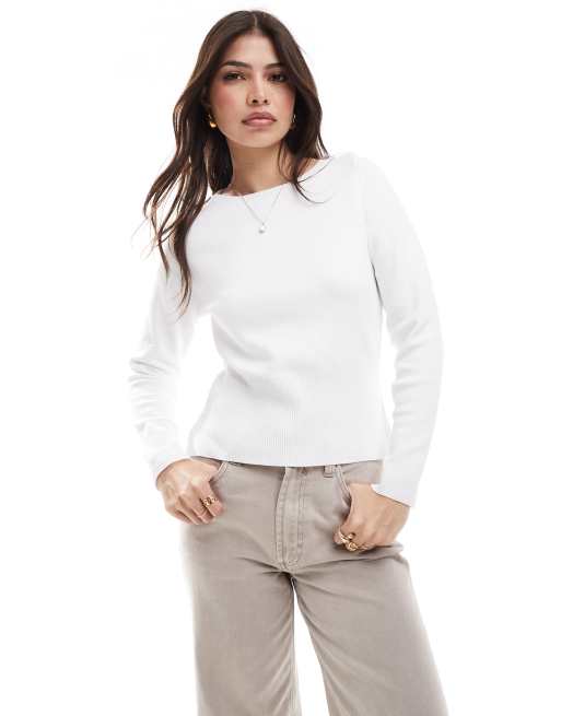 ASOS DESIGN - Ecru trøje med bådudskæring og indsyet talje