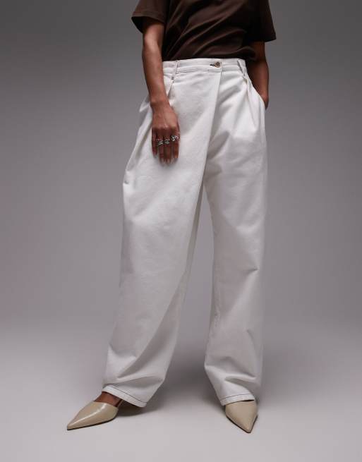 ASOS DESIGN - Ecrufarvede jeans med vide ben og slå-om-detalje