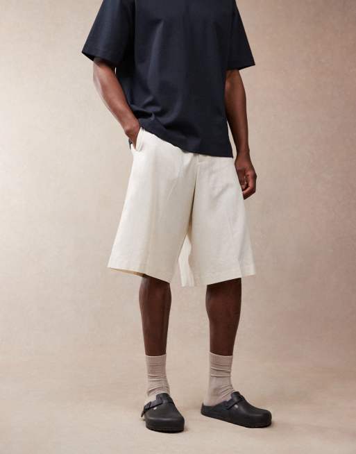 ASOS DESIGN - Ecrufarvede oversized elegante bermudashorts i hørblanding