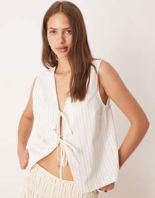 ASOS DESIGN - Ecrufarvet habitvest med bindebånd foran og striber i hør