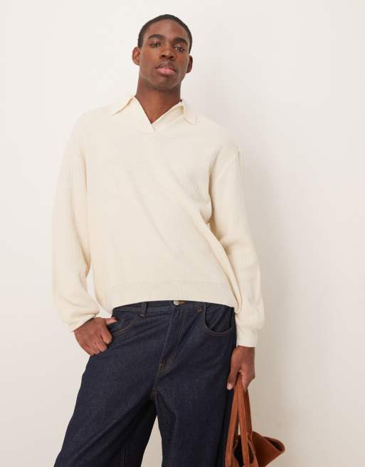 ASOS DESIGN - Ecrufarvet oversized ribstrikket top med hak i halsen
