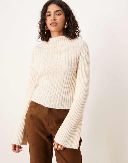 ASOS DESIGN - Ecrufarvet striktrøje med draperet halsudskæring