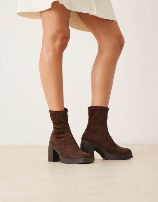 ASOS DESIGN - Edison - Chokoladebrune chunky sokkestøvler med hæl og firkantet tå i imiteret ruskind