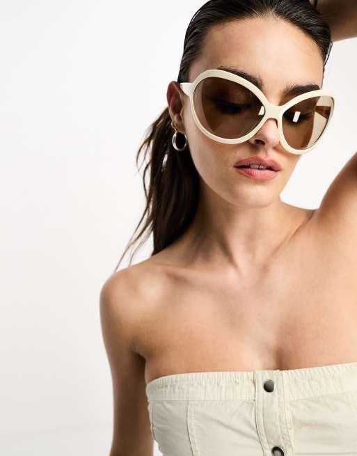 ASOS DESIGN - Ekstremt oversized bug eye-solbriller i råhvid