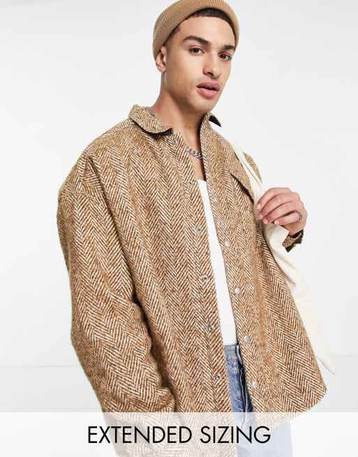 ASOS DESIGN - Ekstremt oversized skjorte i uldblanding med brunt sildebensdesign