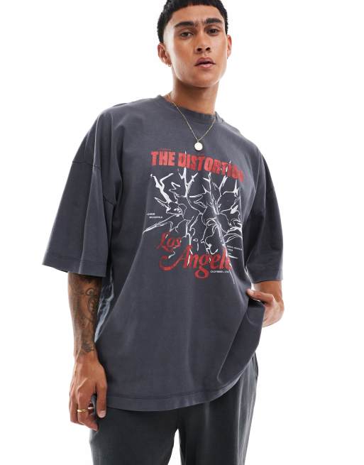 ASOS DESIGN - Ekstremt oversized T-shirt med 'Los Angeles'-print i koksgrå