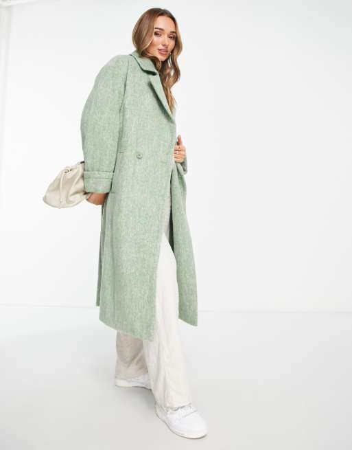 ASOS DESIGN - Elegant børstet frakke i blød grøn uldblanding