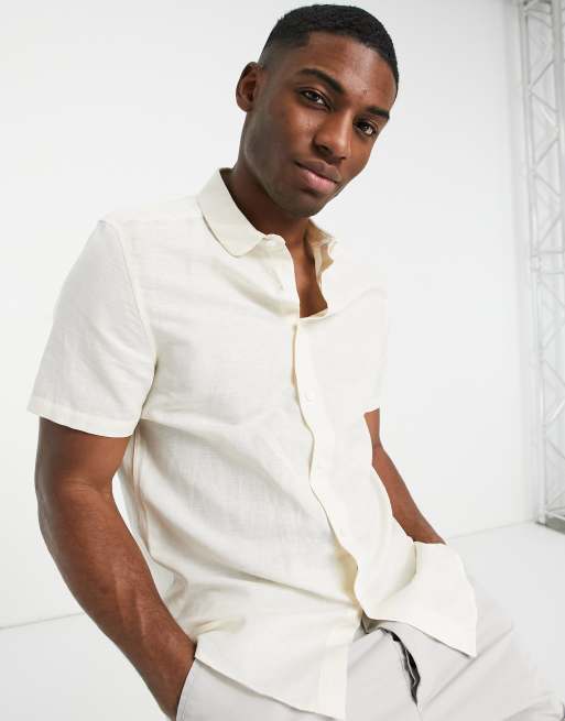 ASOS DESIGN - Elegant hørskjorte med penny-krave i ecrufarve i regular fit