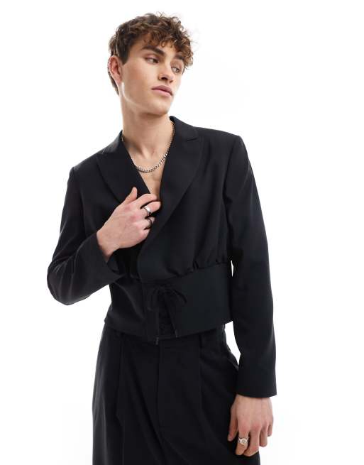 ASOS DESIGN - Elegant og cropped sort jakke med snører - Del af sæt