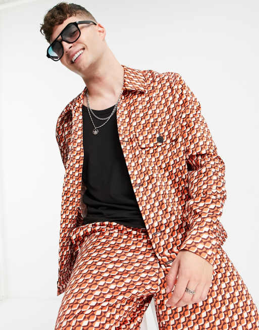 ASOS DESIGN - Elegant rustrød trucker-jakke geometrisk retroprint - Del af sæt
