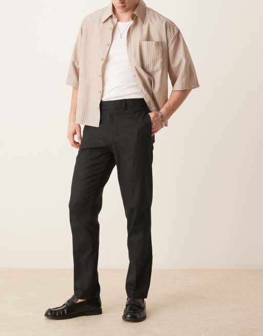 ASOS DESIGN - Elegante bukser i sort hørblanding i slim fit