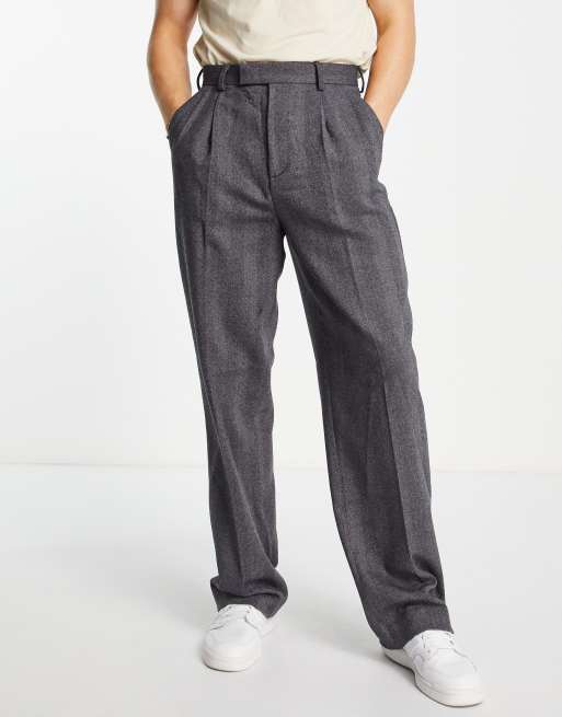 ASOS DESIGN - Elegante bukser med vide ben i koksgrå med sildebensmønster i uldblanding