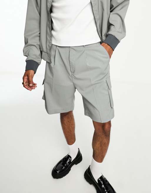 ASOS DESIGN - Elegante cargoshorts med vide ben og lommedetaljer i grå - Del af sæt