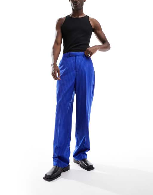 ASOS DESIGN - Elegante nålestribede bukser med vidde i koboltblå